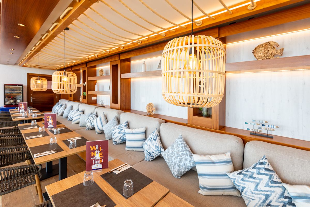 El interiorismo, actualizado recientemente, busca ofrecer confort y funcionalidad con un estilo contemporáneo y toques marineros. Las habitaciones, luminosas y climatizadas, apuestan por una decoración sencilla y agradable, con mobiliario práctico, televisores de pantalla plana y, en muchos casos, terrazas con vistas al mar o a los jardines.