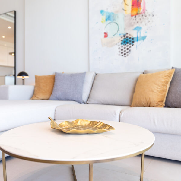 Los interiores presentan acabados de alta gama, cocinas abiertas con electrodomésticos de última generación y salones que se prolongan hacia terrazas con piscinas privadas o “splash pools”. La paleta cromática se mantiene elegante y atemporal, con blancos, grises y maderas claras que refuerzan la sensación de amplitud y serenidad. La atención al detalle se percibe en elementos como iluminación integrada, domótica y soluciones pensadas para la vida contemporánea.